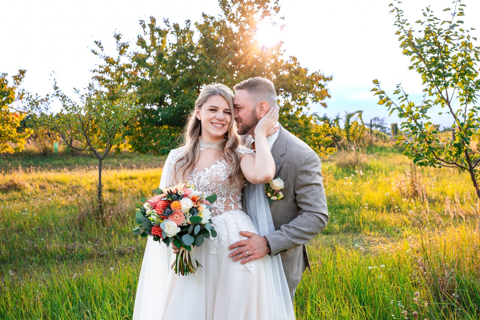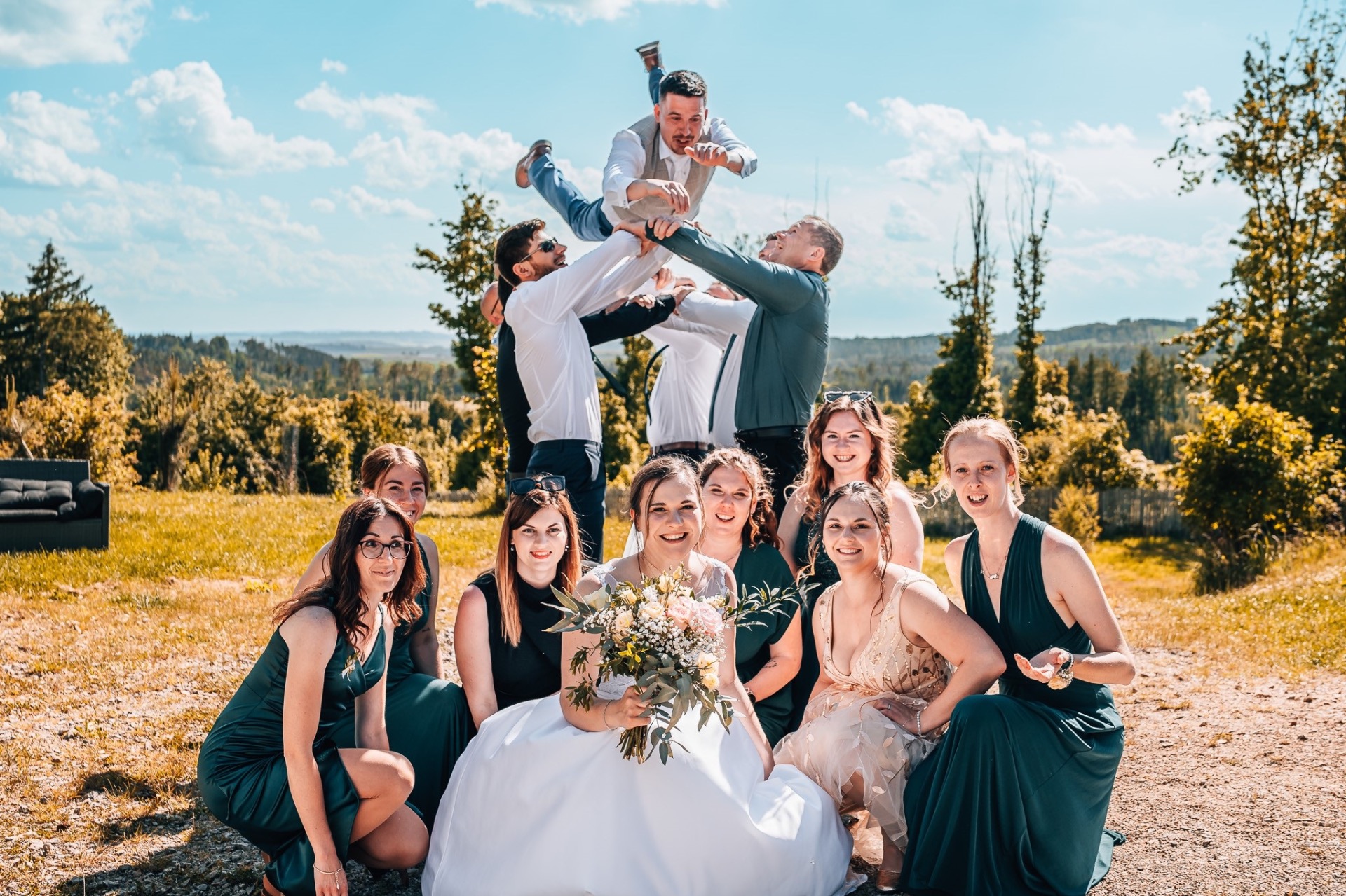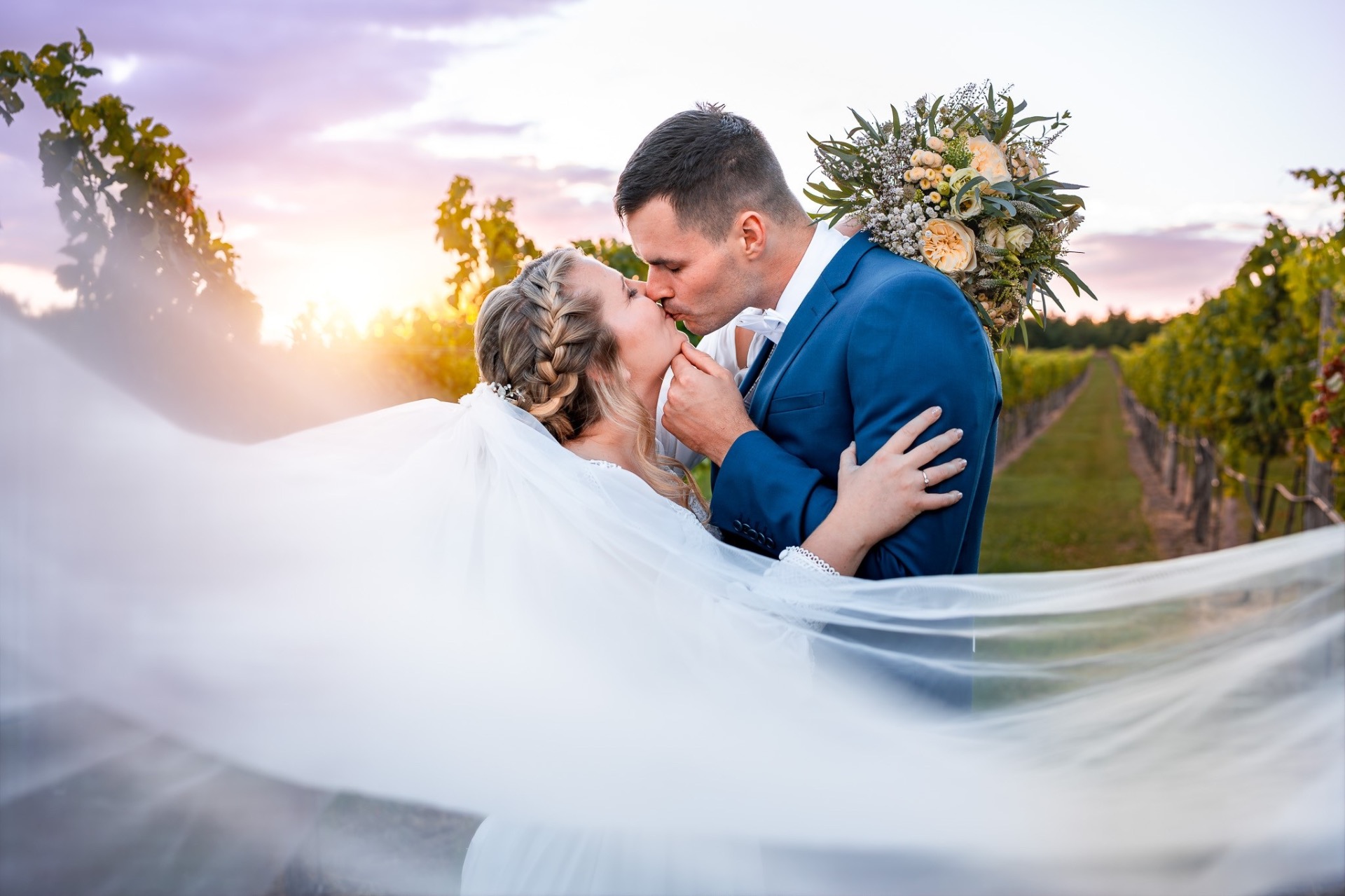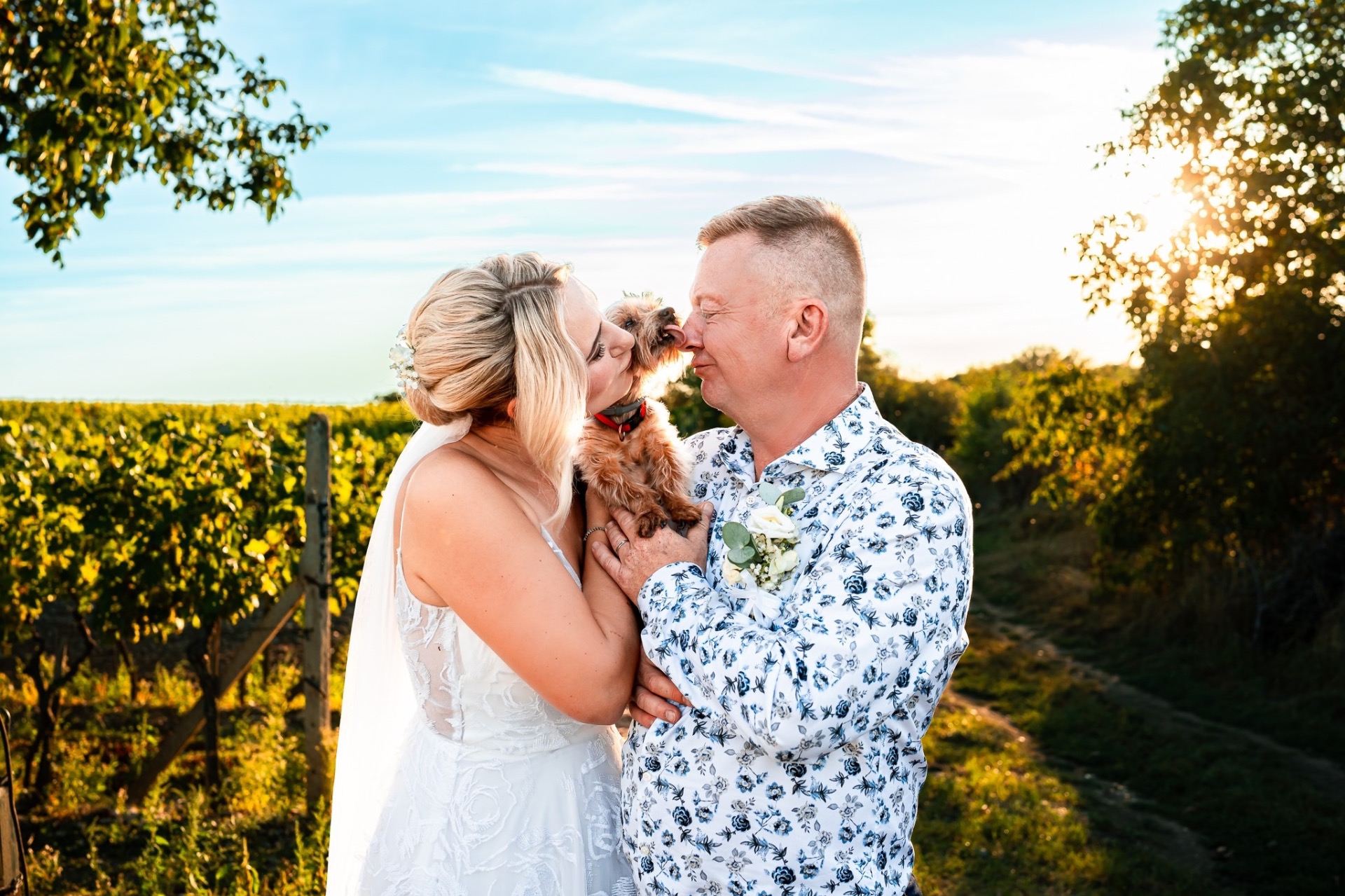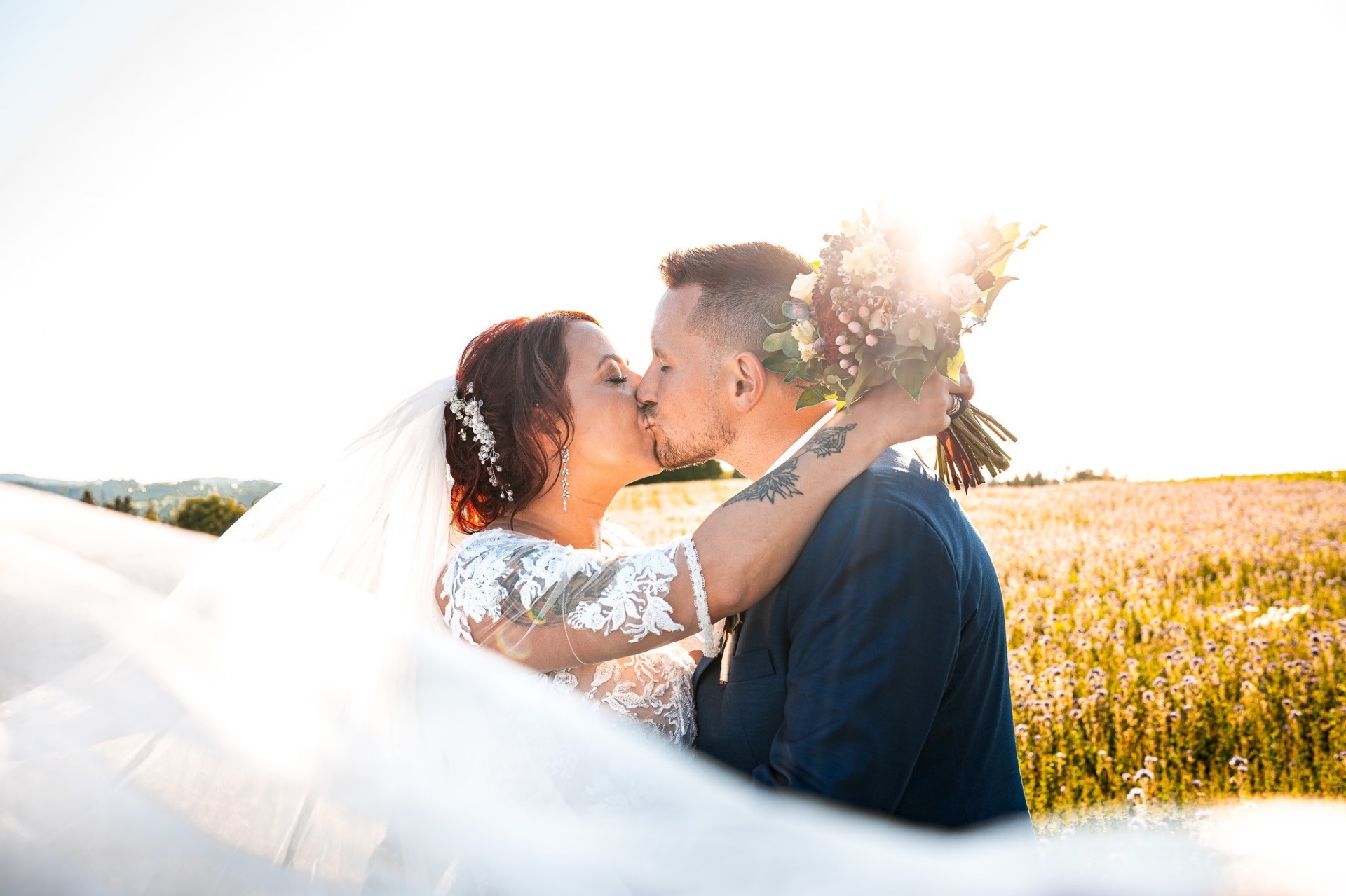 Svatební obřad v kostele, následný přesun do Mohelenského dvora a kousek odtud nádherná vyhlídka, která nabídla jeden z nejkrásnějších západů slunce. Den plný silných momentů, klidu a přirozené krásy. Naprostá dokonalost.