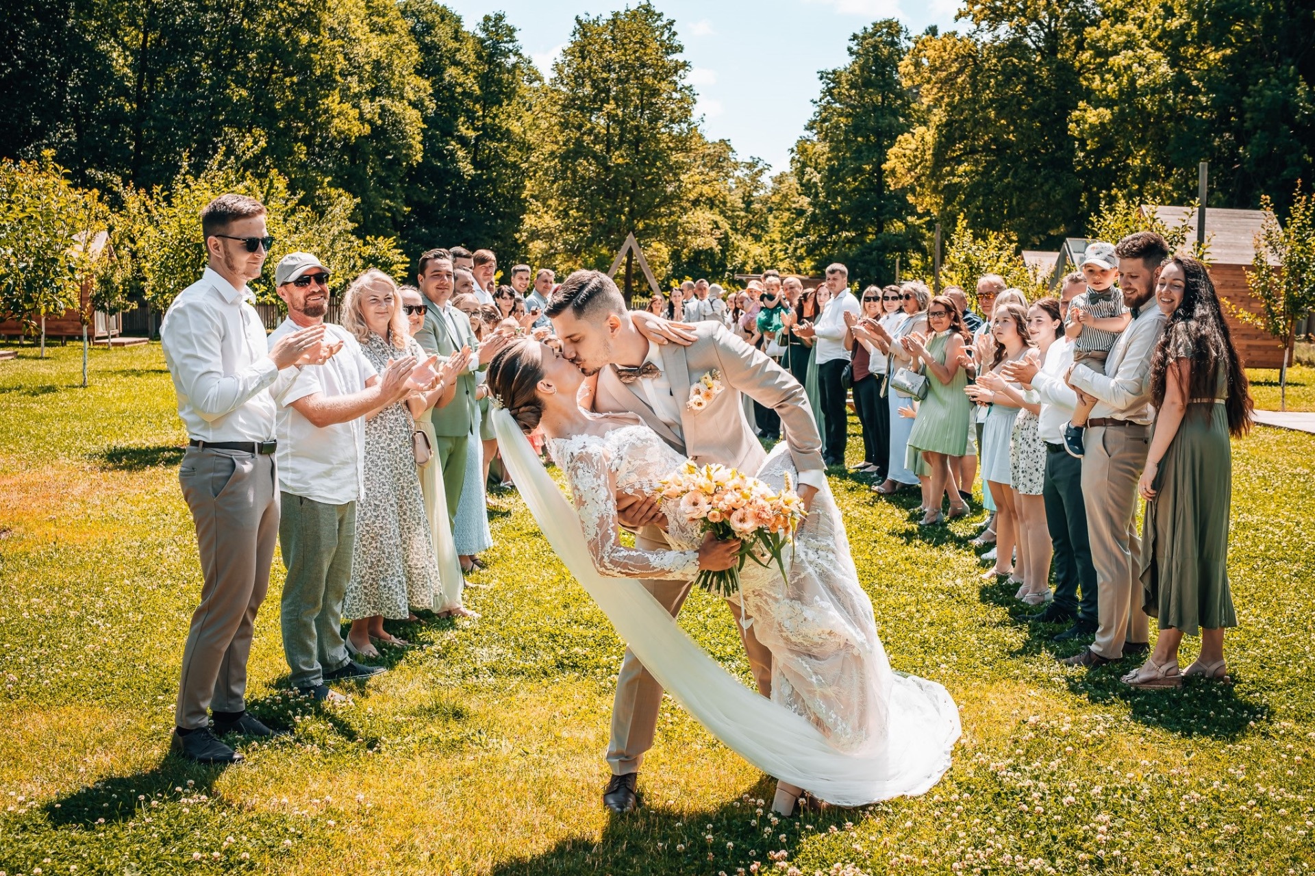 Krásná historická budova uprostřed zeleně, ideální pro klidný a elegantní svatební den. Na přání novomanželů zůstává většina momentů v soukromí – sdílím alespoň pár snímků se svolením."